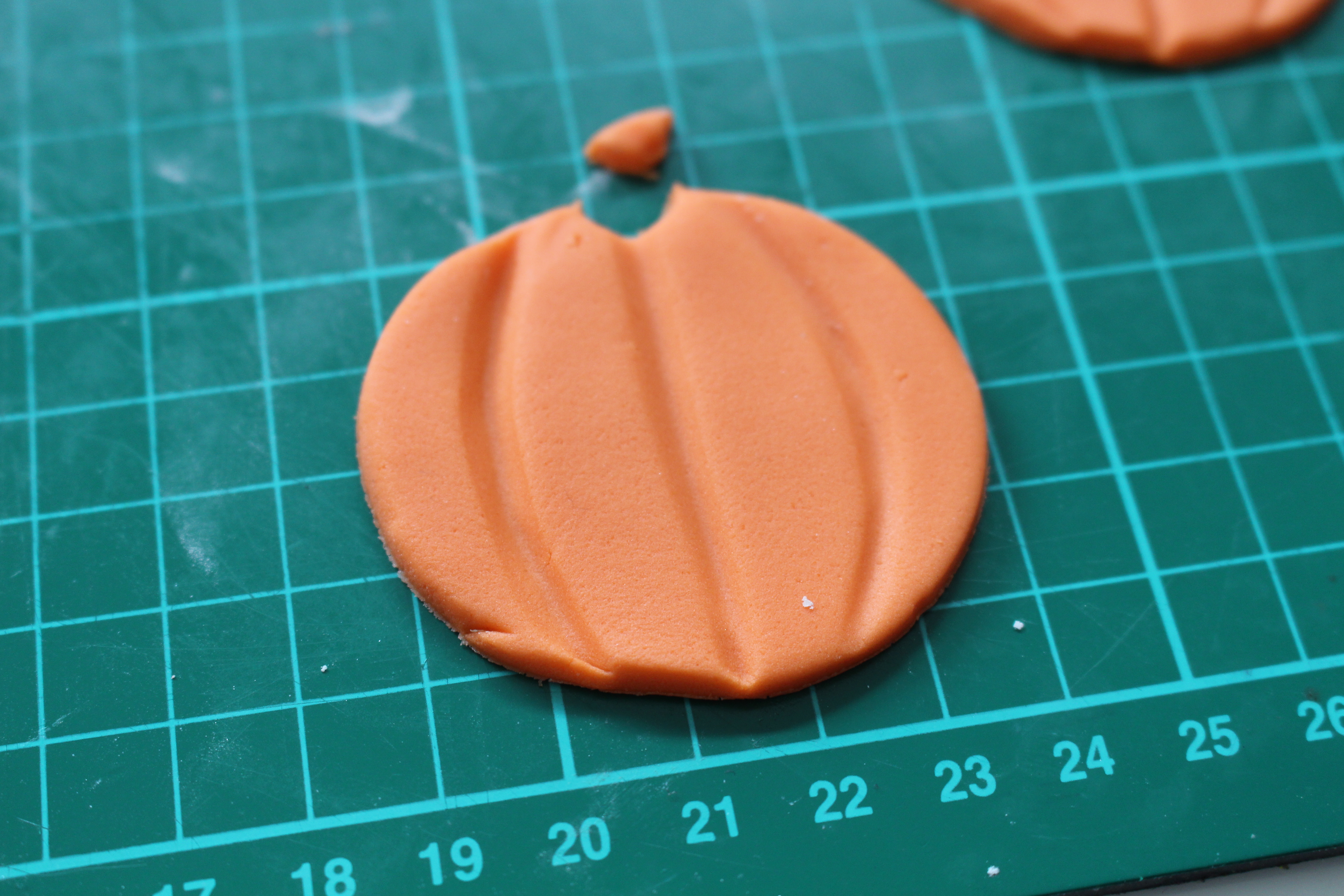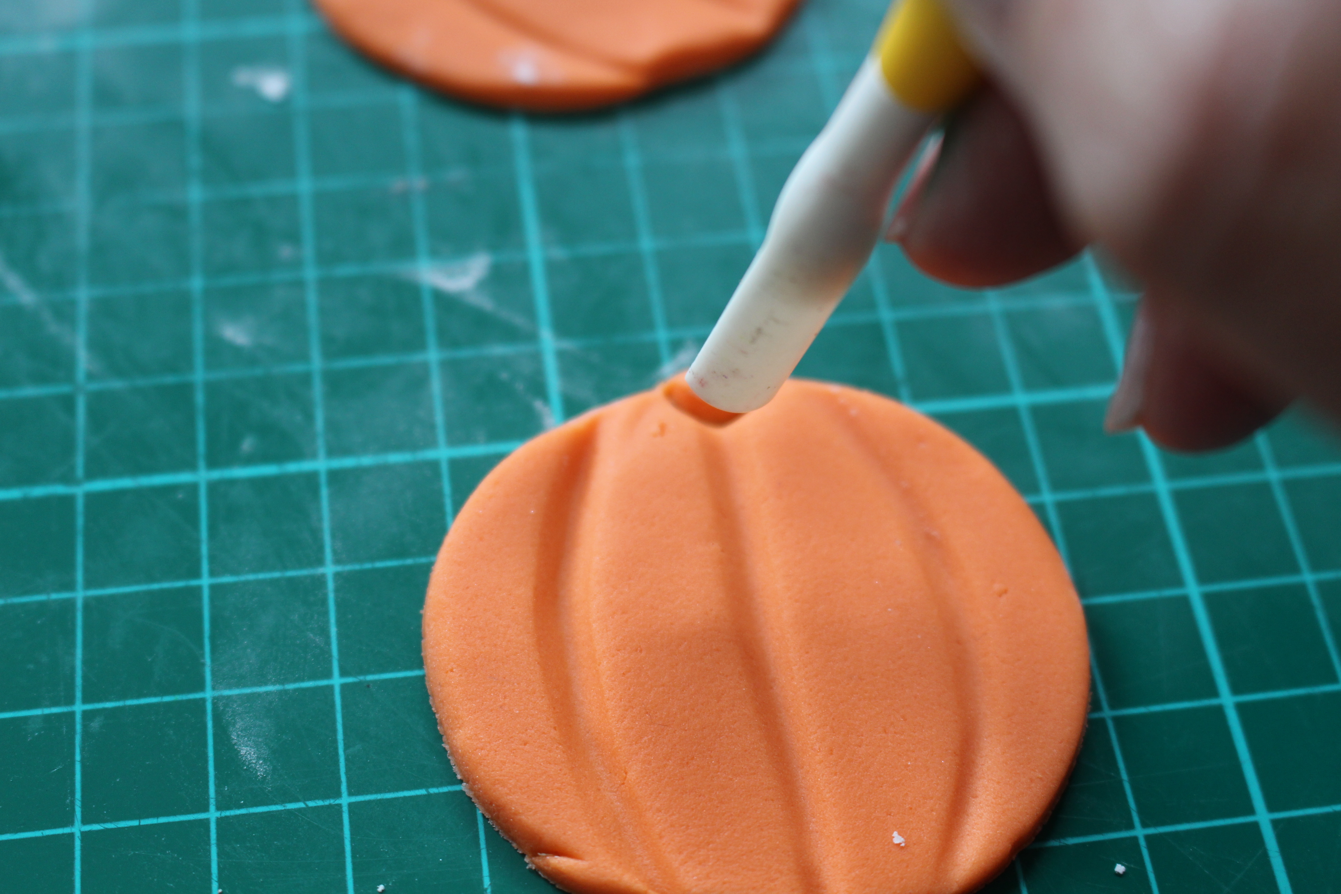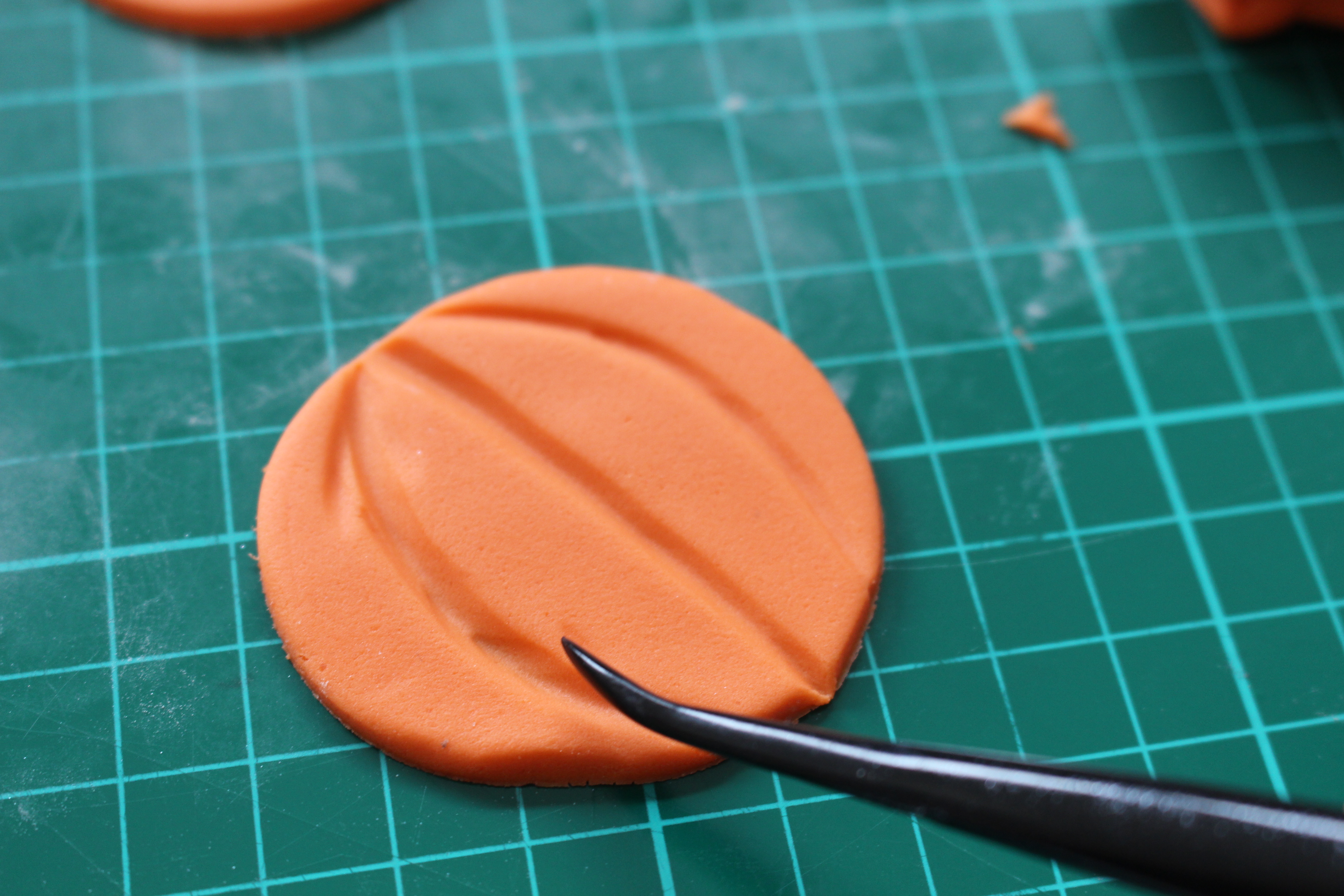 Using your curved tool, make a small imprint in the top of the pumpkin.