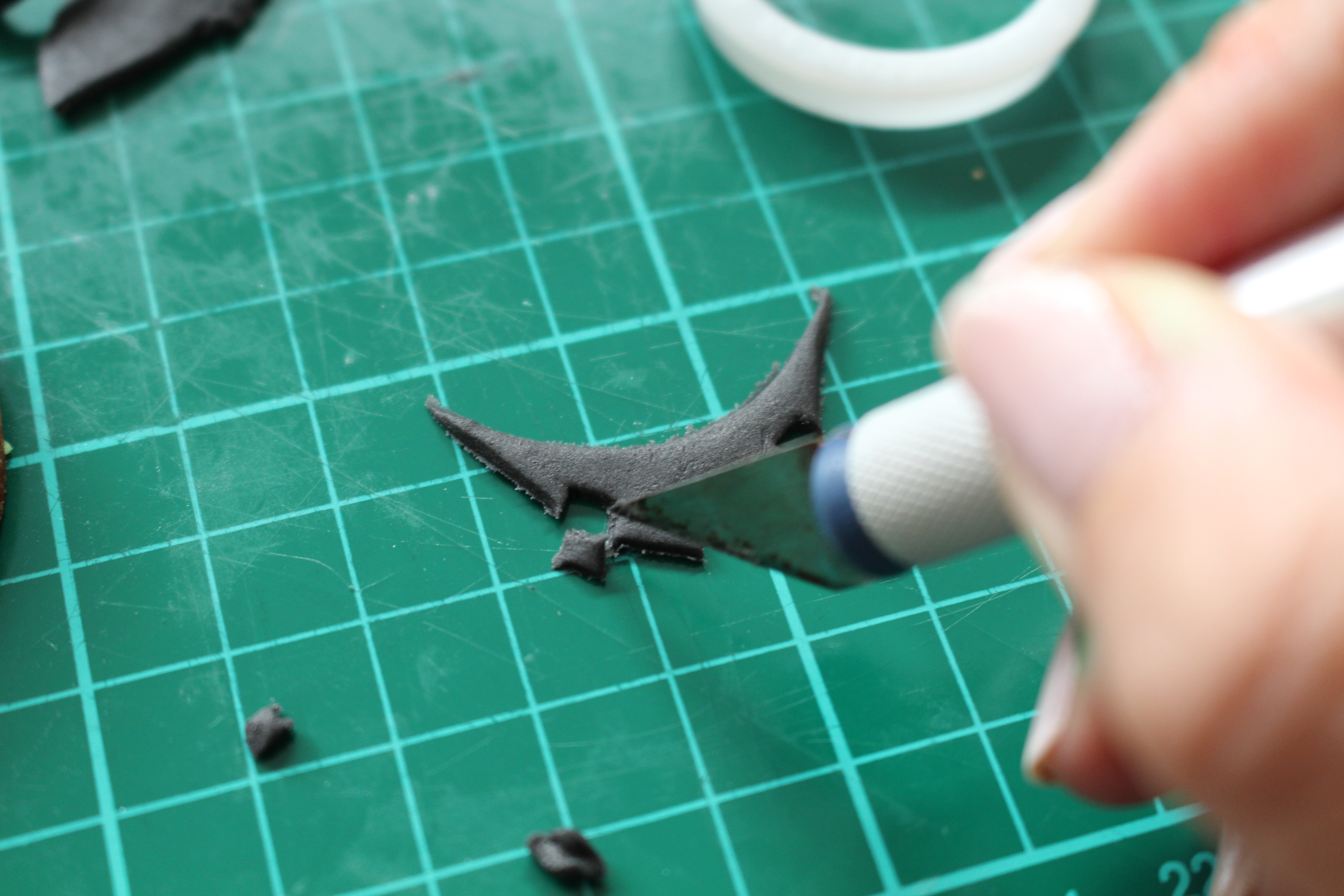 Using a dry paintbrush gently rub black dust into the groves. Once you have done this, attach your icing to the top of the cookie using royal icing, or a mixture of watered down royal icing.