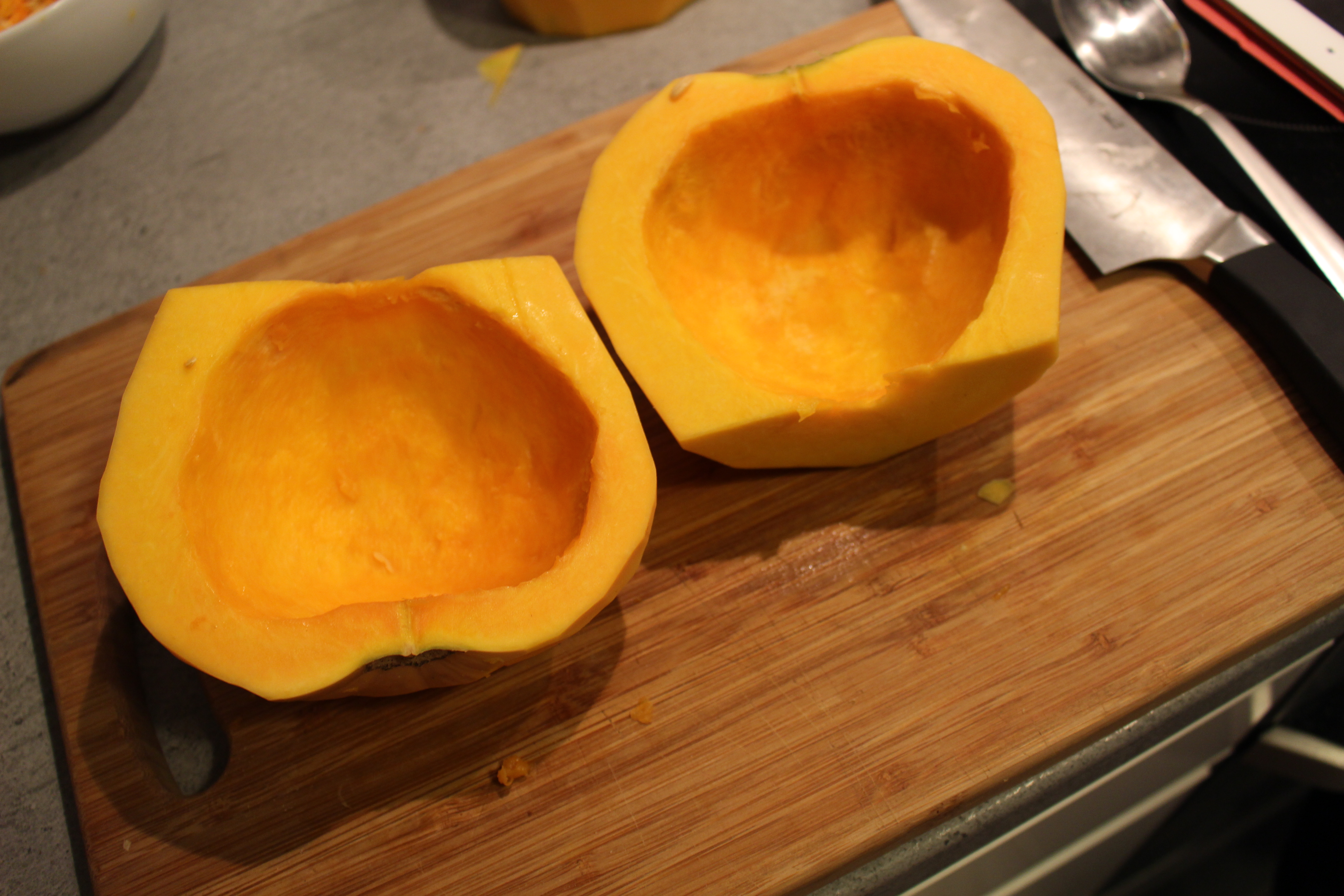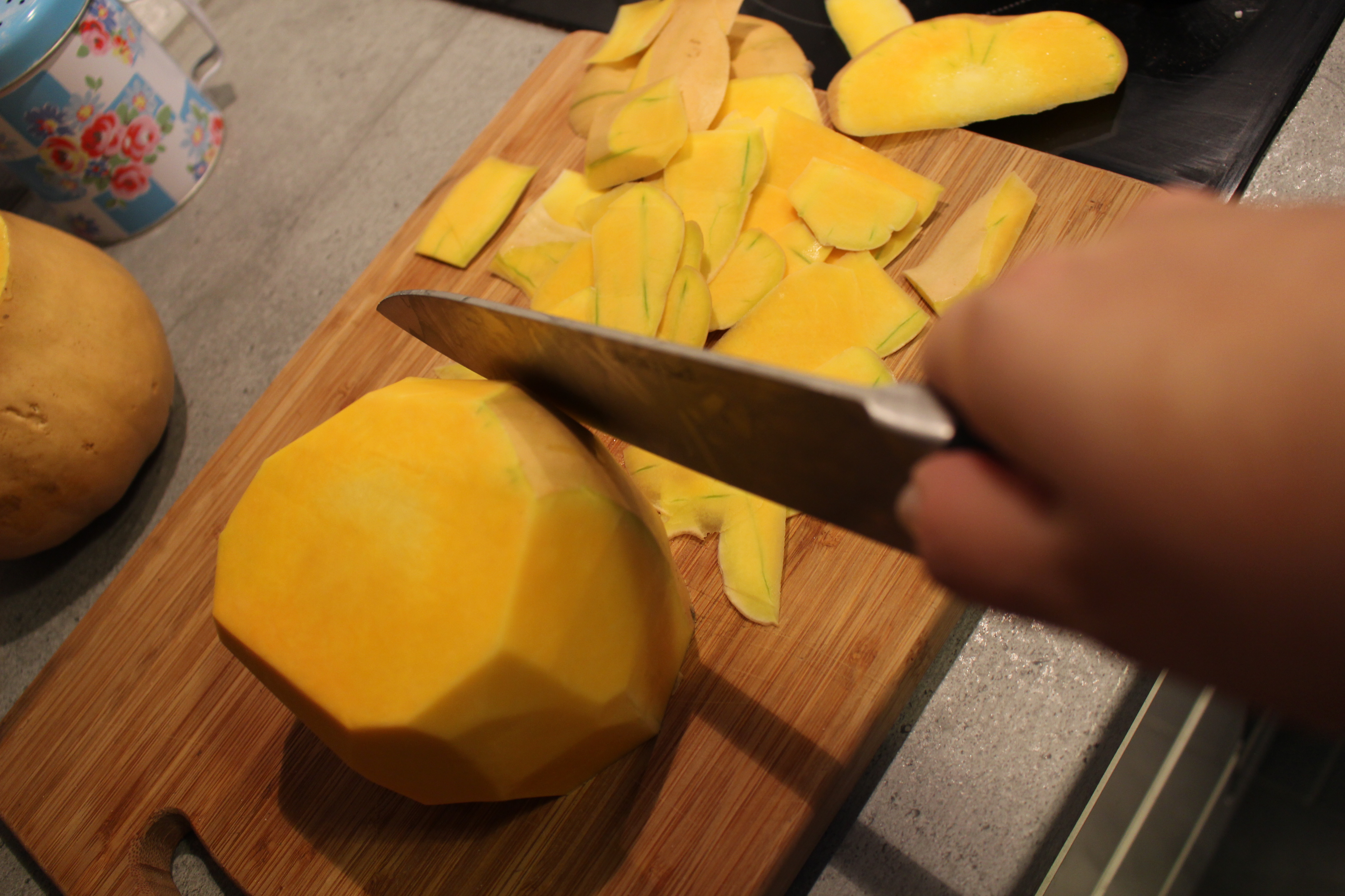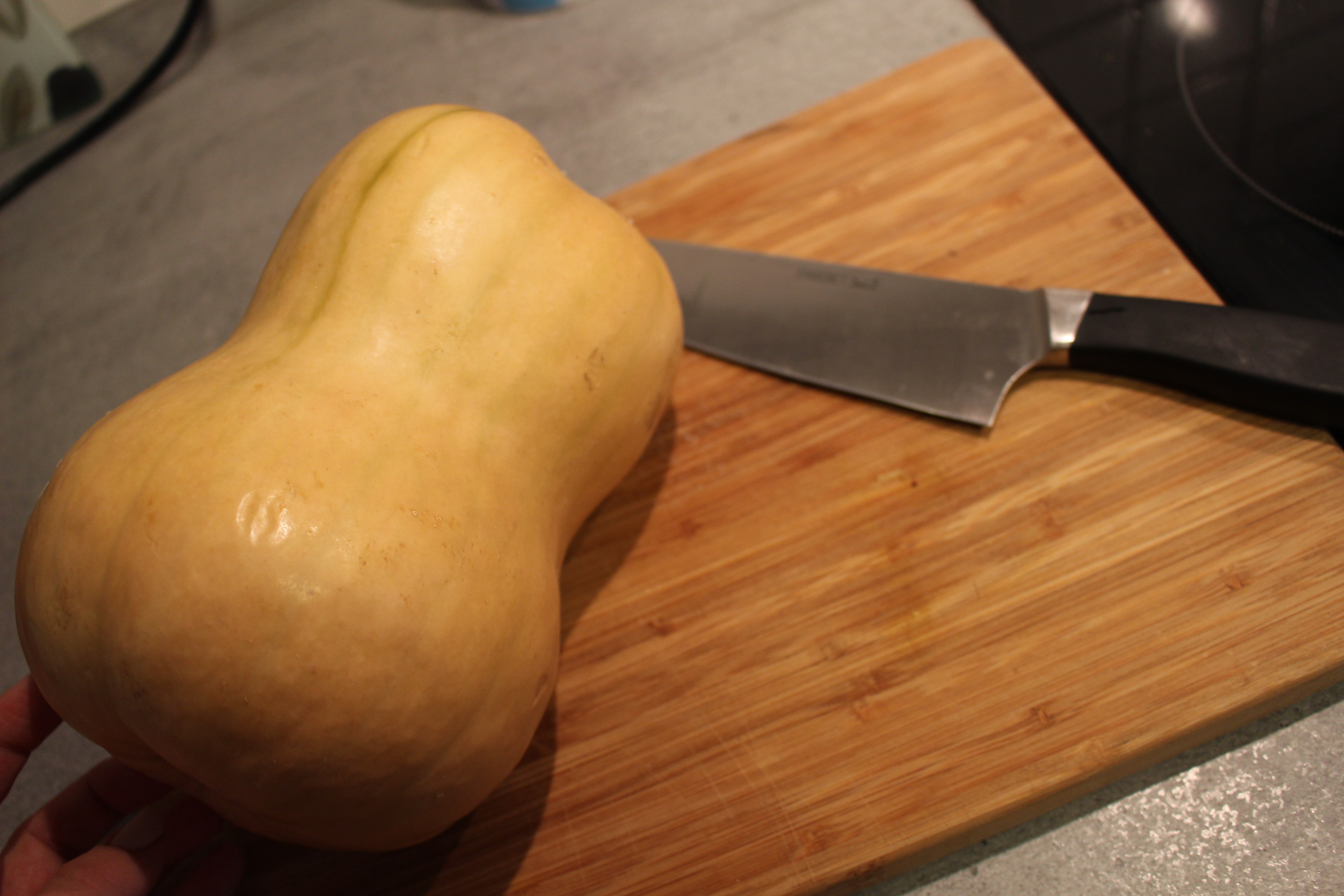 I chose a butternut squash as my pumpkin variety – now this is totally personal preference the only pumpkins I recommend you don’t use are the big ones for carving as they are really stringy. I like butternut squash because it has a really lovely smooth texture.