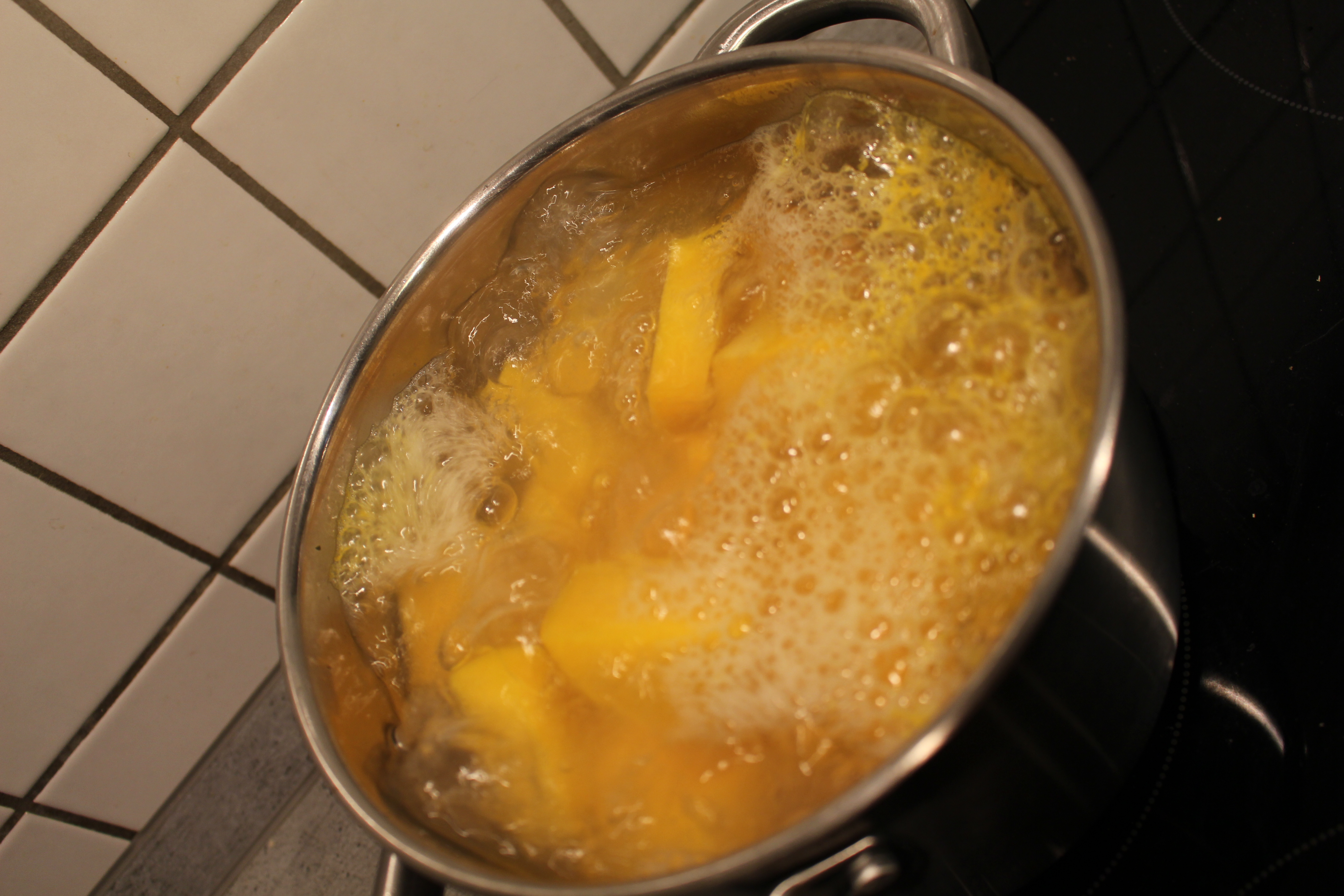 Cut the squash into chunks and boil for about 20 minutes or until nice and soft.