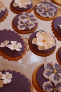 Leave the flowers to dry a little before placing them onto the cookies fixing with a small dot of royal icing, water or edible glue- Do not worry if the petals fall onto the cookie this leaves for a nice effect!