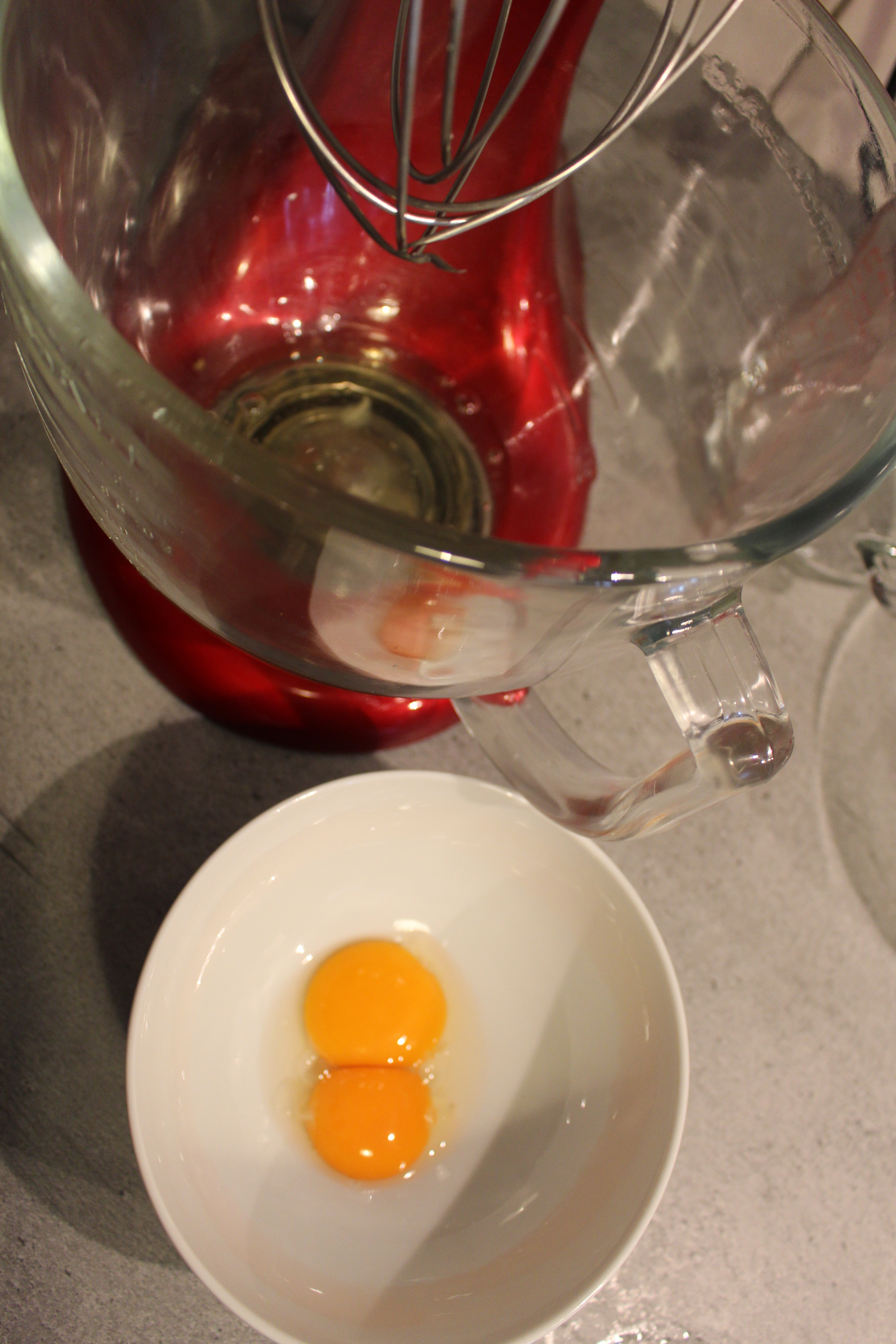 Next separate your eggs. Be really careful not to get any yolk or shell into your whites otherwise they will not become firm when whisked.