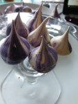 Hold the bag about an inch from your baking sheet and gently squeeze from the top of the bag. This will allow the ‘kiss’ to drop and create a longer shape. Stop squeezing and pull away the bag to create a nice pointed peak on the top.