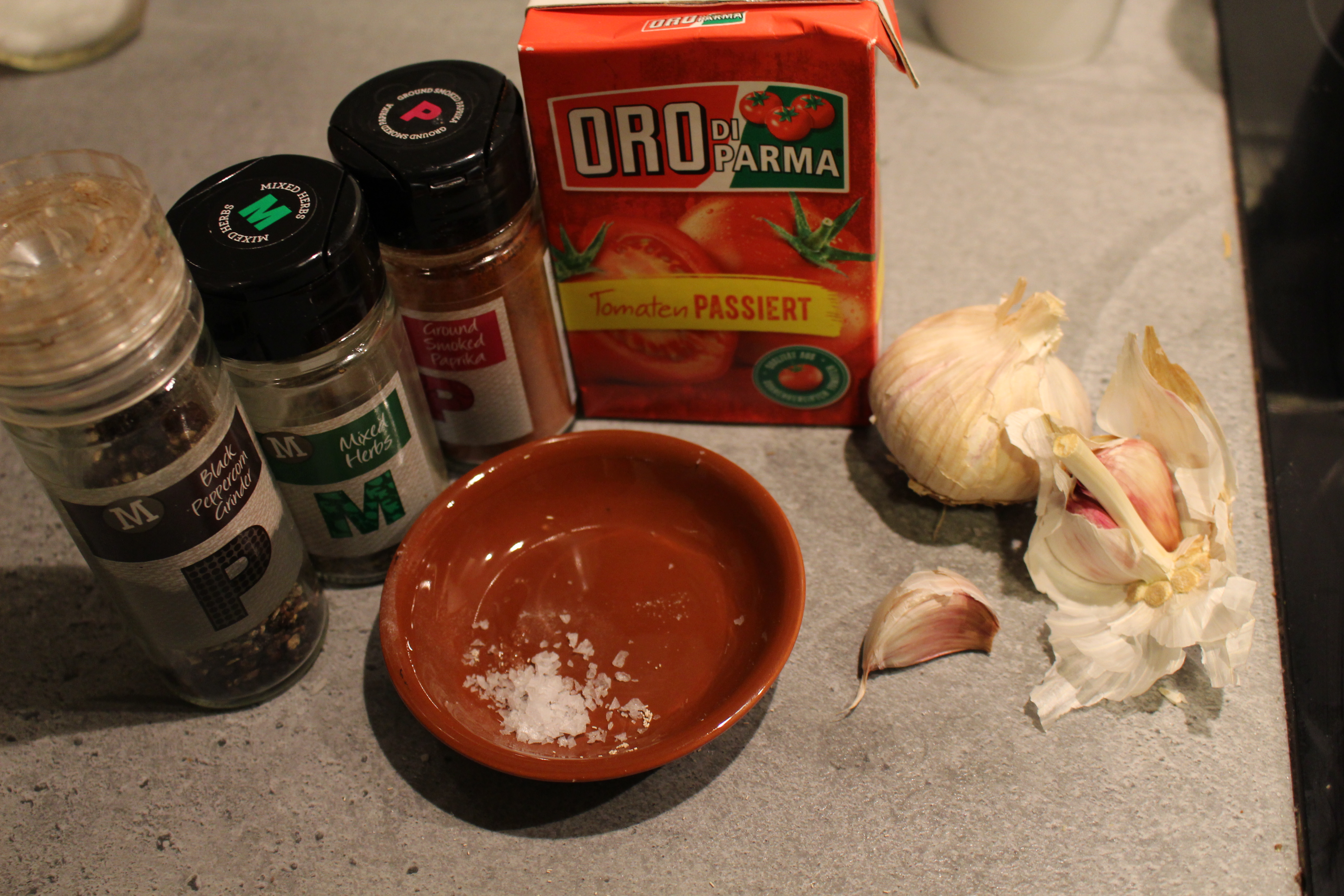- 4 pieces of thin bacon cut into strips (NOT out of choice- thicker bacon doesn’t exist in Germany it appears!)