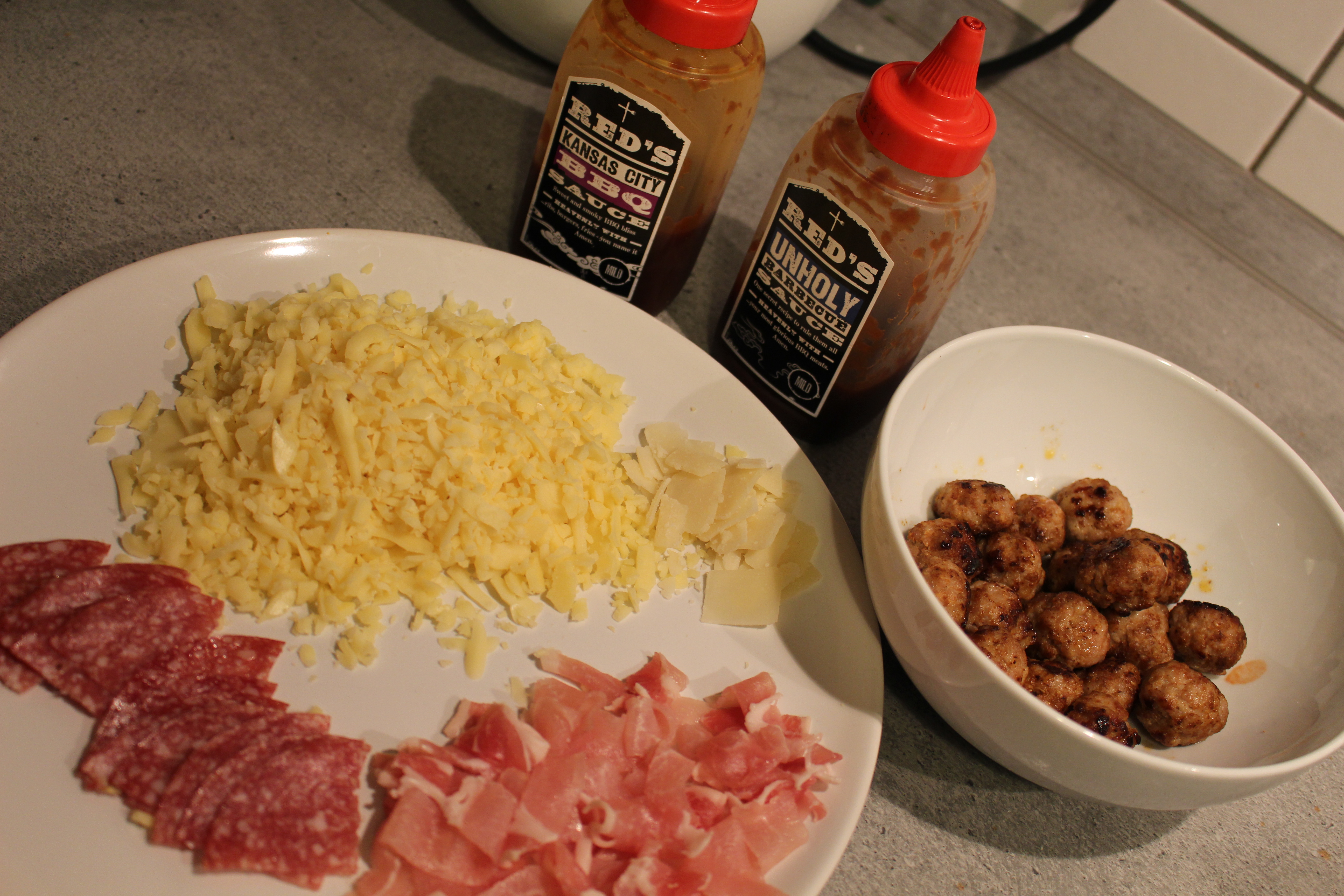 Now prepare your other pizza toppings. Being honest, the amount of toppings you choose is entirely up to you. I didn’t quite have as much cheese as I wanted in the house but it turned out delicious anyway.
