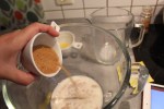 Warm the milk until it is hand hot, – about 40 seconds in the microwave. Sprinkle in your yeast]. Leave this for 5 minutes to froth up.