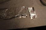 Take a second piece of foil, again around 6 inches wide and fold in half. At one end fold and crease then tear off this piece.