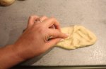 To shape your buns, flatten a ball out on your surface. Then fold inwards from the edges, pressing down each time.