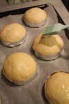 Place your buns inside some pre-made bun rings, I made mine out of tin-foil – click here to find out how. Cover with cling film and leave for another hour until they have doubled in size.