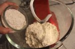 Then add both flours and mix to combine. **TIP** If you would prefer you can give the flour a quick stir before lowering your dough hook.