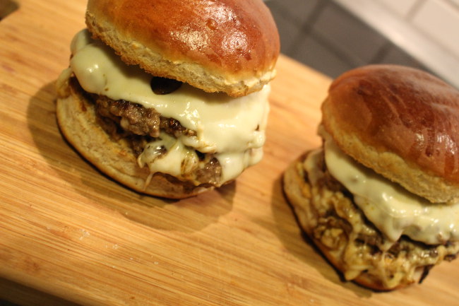 Place the second burger on the top of the first and add your final piece of cheese. Remove from the heat, place your ‘lid’ back on the top and allow the cheese to melt.