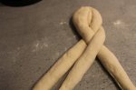 With a drop of water stick the ends of the three dough lengths. For ease I will now number them 1, 2 and 3..