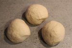Turn out your dough into a clean surface and cut into 3 equal balls. If you want to be precise with this, weigh your first dough ball and divide by 3.