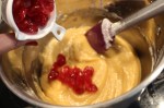 Next combine your baking powder and flour, sift this and add to your pan and mix the batter until it is smooth and free of any lumps.