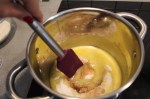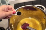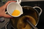 Turn the heat off from the pan. Beat your egg in a small cup and add this to mixture along with your vanilla extract, stir this quickly.