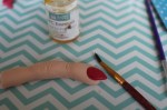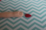 Now to make the fingernail. Take a small ball of fondant in the colour of your choice, I chose “Ruby”, roll and flatten in a tear drop shape, test this fits in the groove you created before adding any water to fix in place. To give your nail a painted look, add a layer of confectioners glaze, this will leave it with a nice shiny finish.