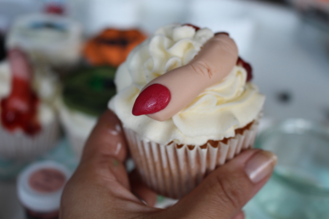 With Halloween just around the corner I felt it was about time to post a new tutorial. I first made these creepy fingers a couple of years ago, when I had been baking a little while and thought they would be cool to give out to the trick-or-treaters who came to call as we this was our first Halloween in our own home I wanted to impress…unfortunately for me, we discovered that where our house was absolutely ZERO trick-or-treaters arrived at our door last week. The cakes were then promptly distributed to our neighbours to stop us eating them all.