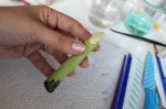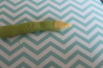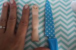 Make some small marks on your “finger” underneath the joints of your own finger. Using your little finger lightly roll your icing finger so that it is left with small indentations.