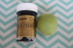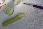 Add some edible glue to the top of the nail and with a wide brush add some glitter to the top of the nail. Finish with some green paint on the bottom and sides of the finger.