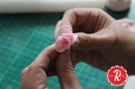 Take your flower in your fingers and gently fold it inwards, curling it to a point where you have as many of the petals showing upwards as possible.