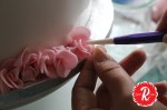 To get the top ruffles, I place the flower next to the cake and gently pushed with the ball tool until I felt the flower was secure, I then readjusted the petals to fill any gaps.